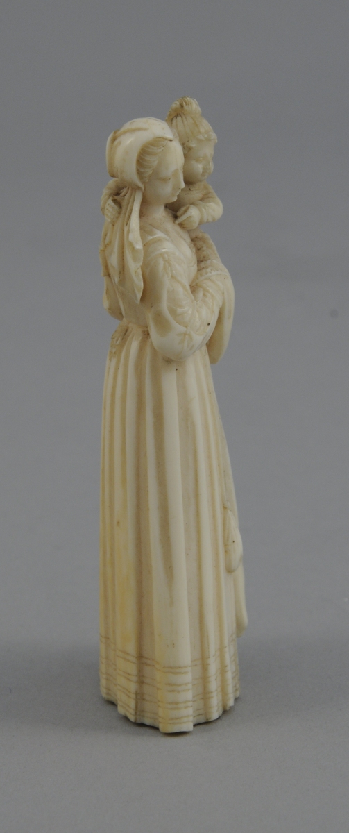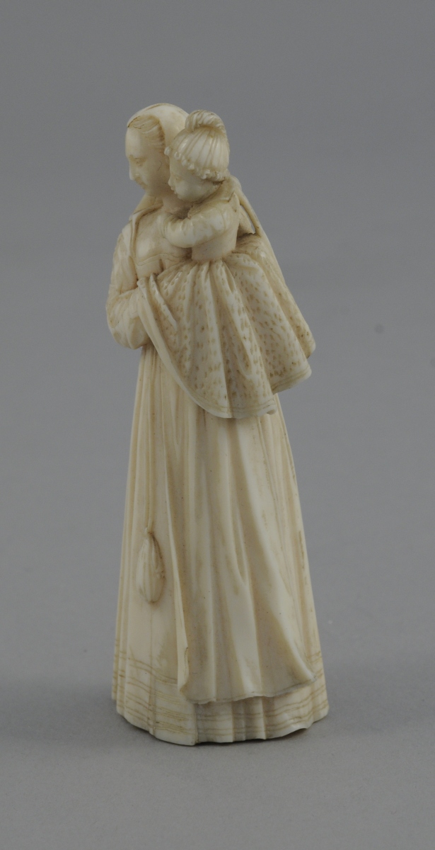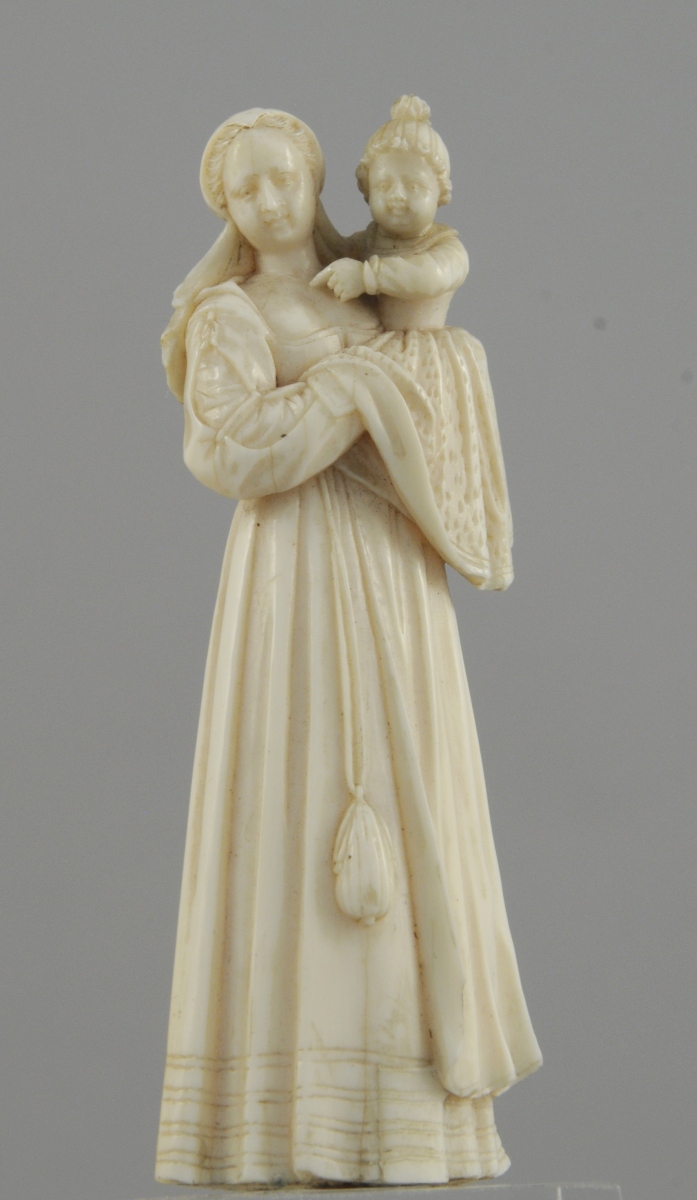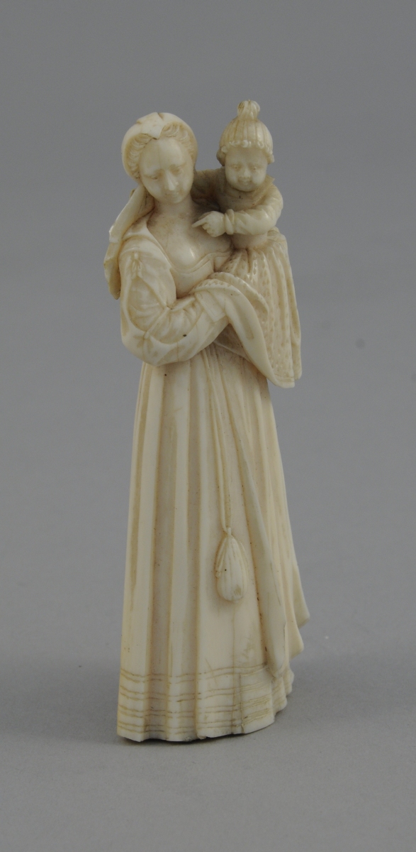 CATHERINE DE MÉDICIS PRÉSENTANT LE DAUPHIN, FRANCOIS II. Ivoire sculpté....