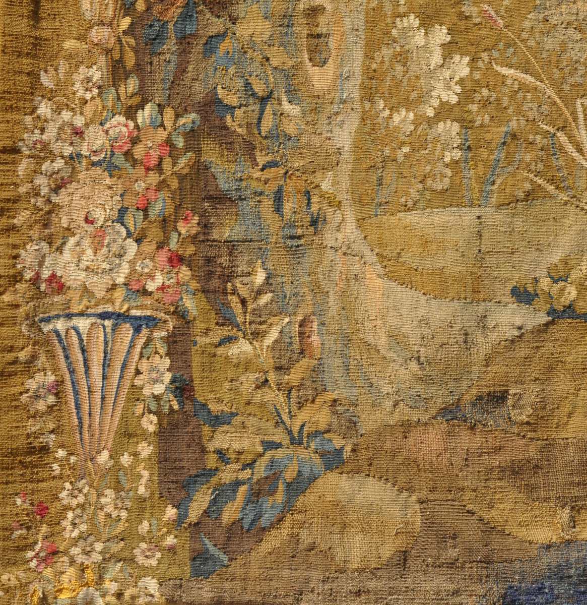 Bordure simulant un rideau de théâtre orné de guirlandes de fleurs.