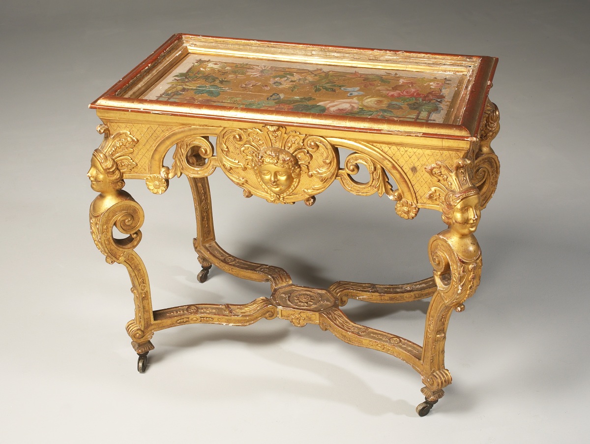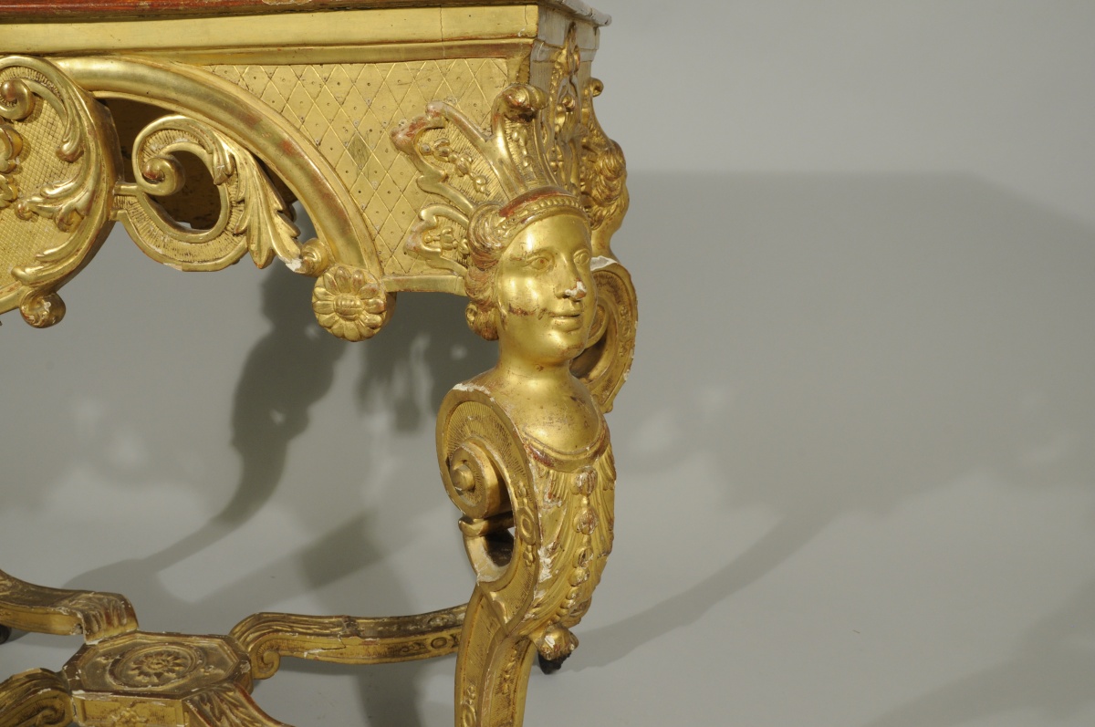 TABLE de MILIEU en bois sculpté et redoré de forme...