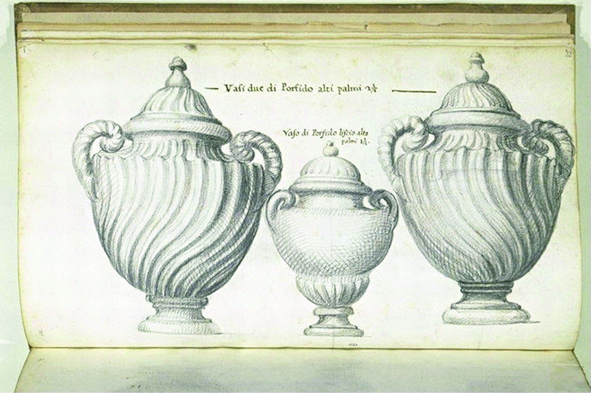 D'après les dessins des vases de porphyre rouge antique par Giovanni Angelo Canini pour le Cardinal de Richelieu, Rome, 1633.