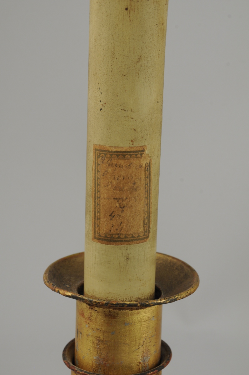 Haut. 32, Larg. 10 cm. (petits manques à la peinture, manque un embout à mèche).