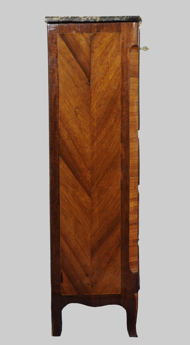 Haut. 107, Larg. 48,5, Prof. 30,5 cm. (piètement restauré, petits manques et restaurations au placage).