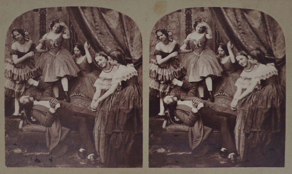 19 vues stéréoscopiques d'époque, dont 2 aquarellées et 3 transparentes.