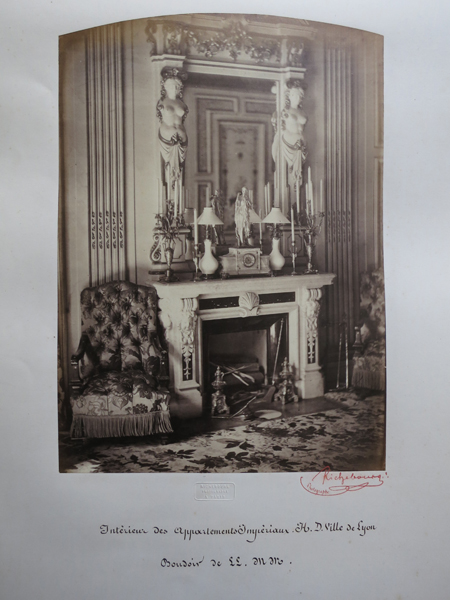 Littérature : " Des photographes pour l'Empereur. Les albums de Napoléon III " sous la direction de Sylvie Aubenas, BnF, 2004. Cheminée Napoléon III au palais du Luxembourg reproduction n°11, page 43. Palais de Tsarskoé-Sélo, chambre à coucher de l'empereur Nicolas Ier, reproduction n°115, page 164. Monument de l'empereur Nicolas Ier, reproduction n° 116 page 165.