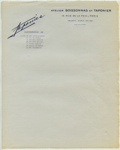 - Papiers à en-tête de l'Atelier Boissonnas et Taponier - Taponier