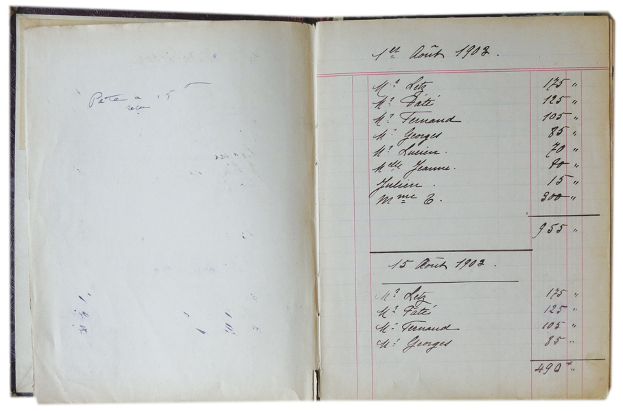 - Cahier d'appointement du personnel de 1903 à 1929 qui indique l'évolution des salaires des employés et la fi délité de certains.