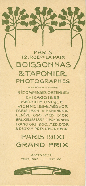 Très bel ensemble qui témoigne du soucis du détail cher à Boissonnas et Taponier.
