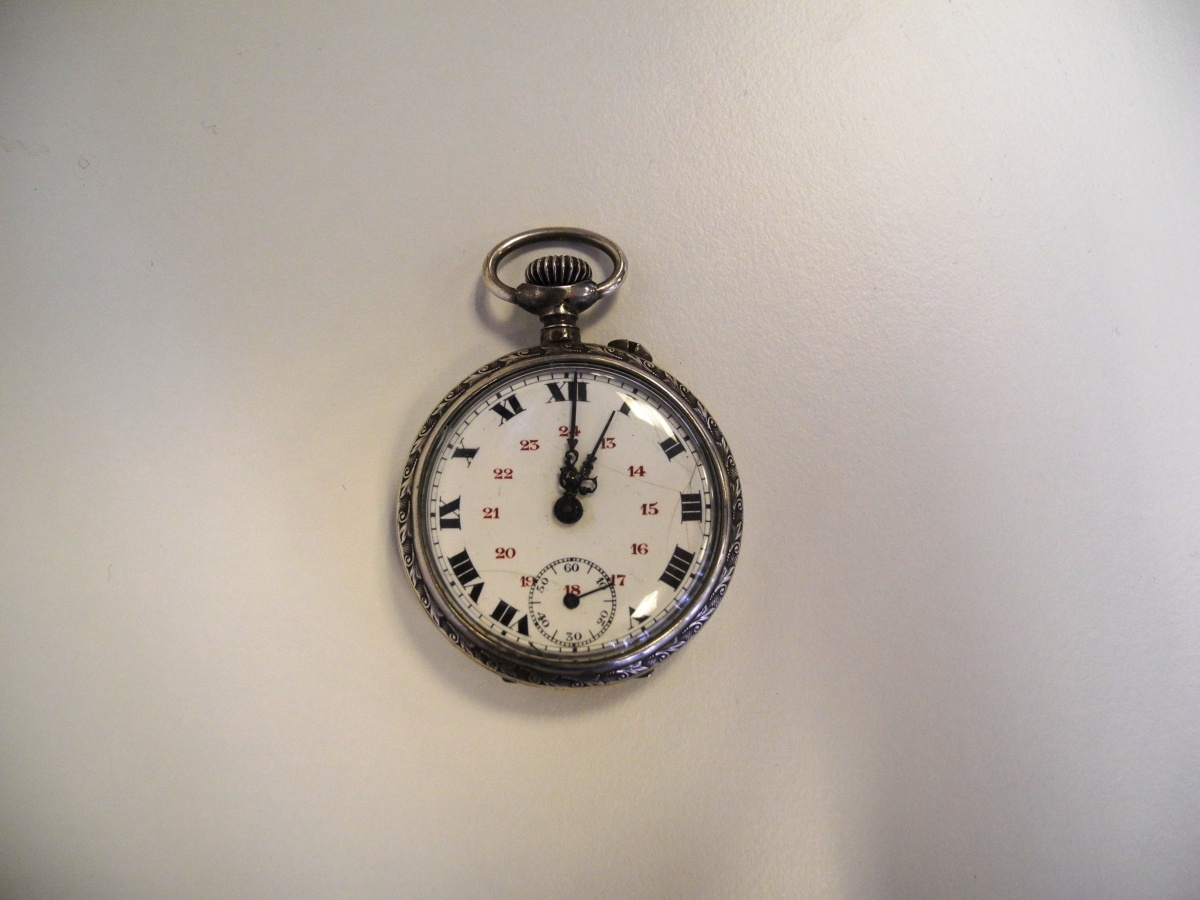 MONTRE DE GOUSSET avec motifs fleuris et deux cadrans à chiffres romains et arabes