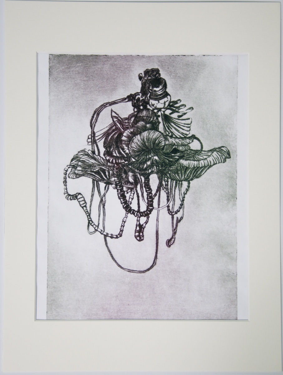 Trois tirages de gravures à la pointe sèche représentant chacune un structure florale à tendance organique. Édition sur 25.