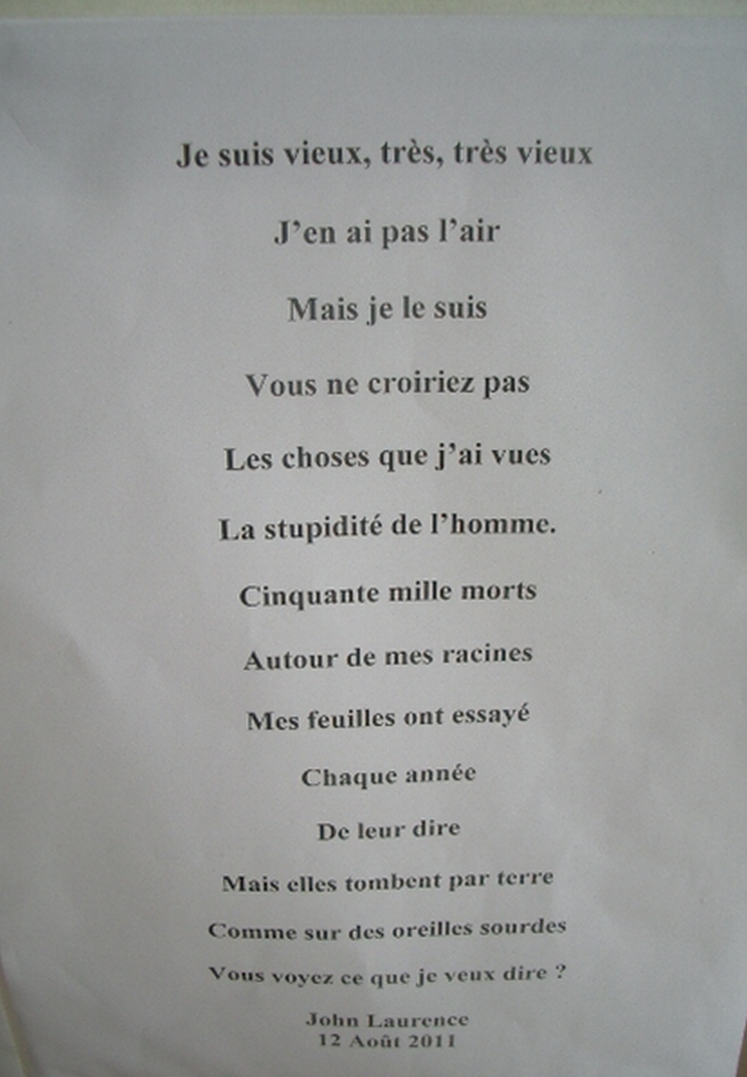 Avec deux textes également de John Laurence, en anglais et en français, qui seront au dos du tableau, également intitulés John's Tree.