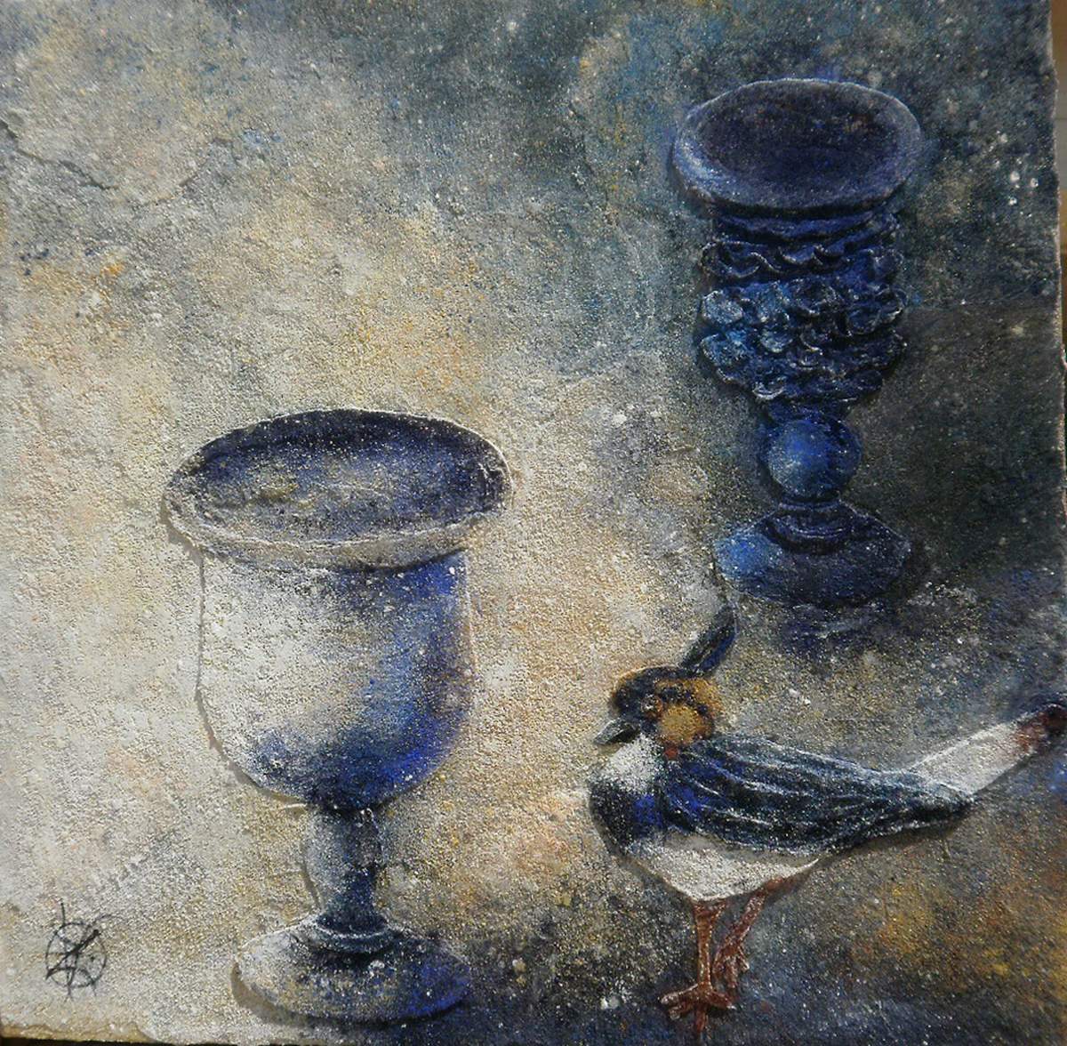 " C'est à travers une technique que j'ai inventée, à base de ciment, résine, sable et pigments naturels, que j'essaie de mettre en valeur la beauté des arbres, des fruits, des fleurs, des oiseaux... Voulant ainsi fixer éternellement cette nature infiniment belle, je les pétrifie avec douceur, privilégiant un graphisme volubile, je les paillette de lumière, je les zoome, je les détache ". Tels sont les mots, aussi poétiques que ses uvres, par lesquels cette grande plasticienne, exposée actuellement à Paris, définit son travail.