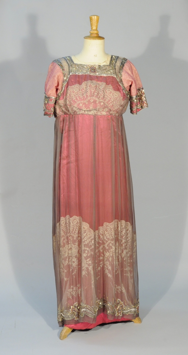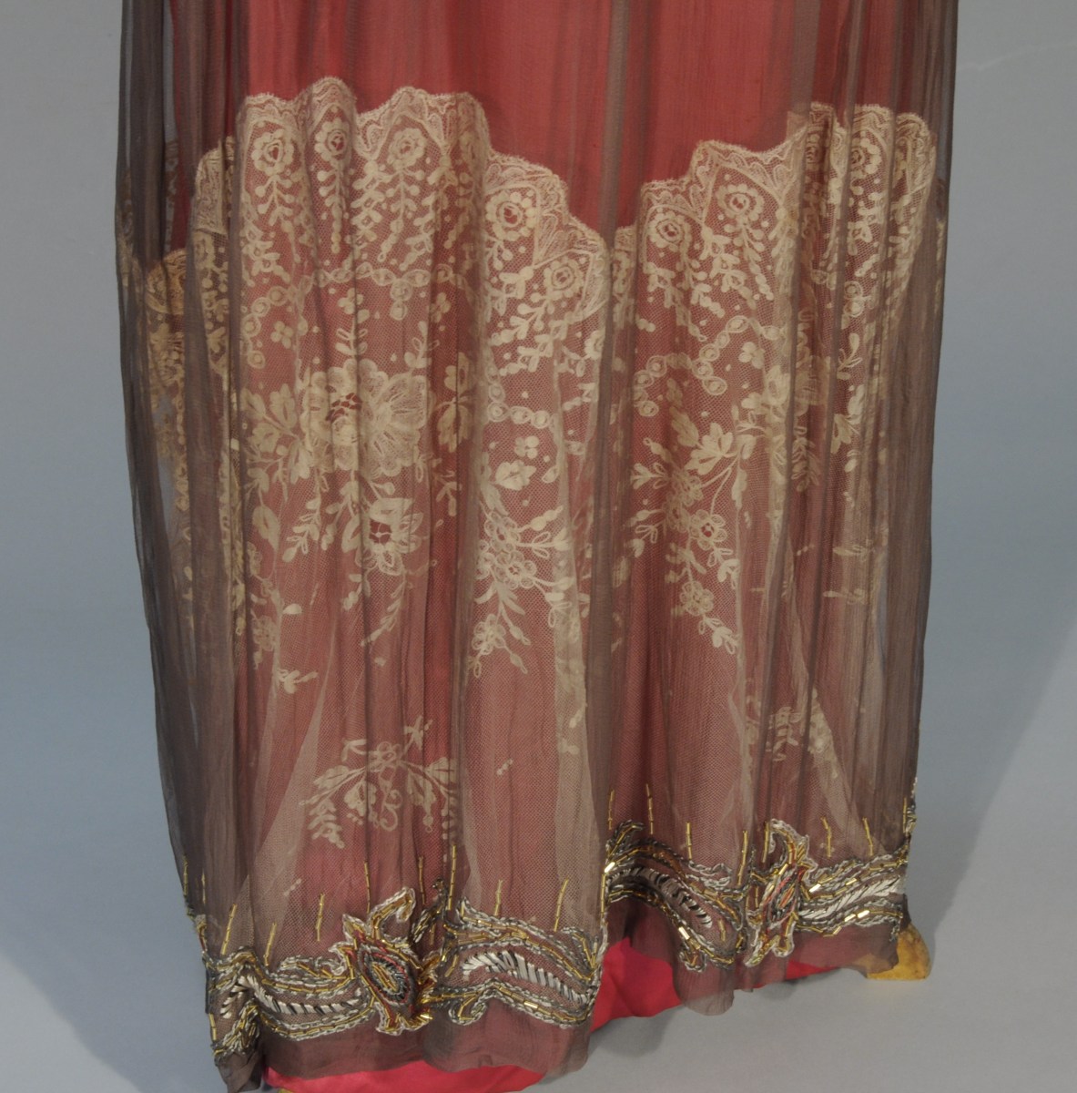 ROBE à taille haute griffée OLIVAN-BREVET à Paris. Satin fushia couvert de tulle et perles tubulaires.