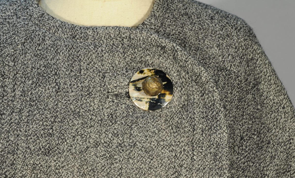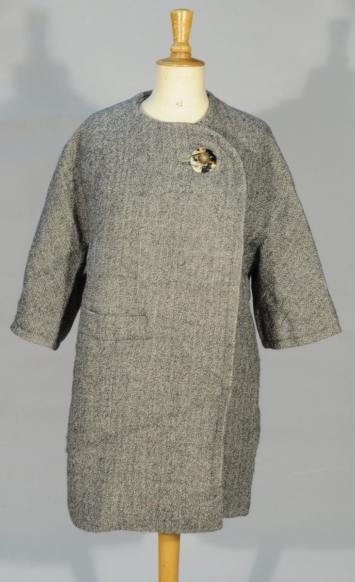 MANTEAU griffé Pierre CARDIN, vers 1950, dans un lainage chiné gris de Robert Perrier pour Madame Robert Perrier.
