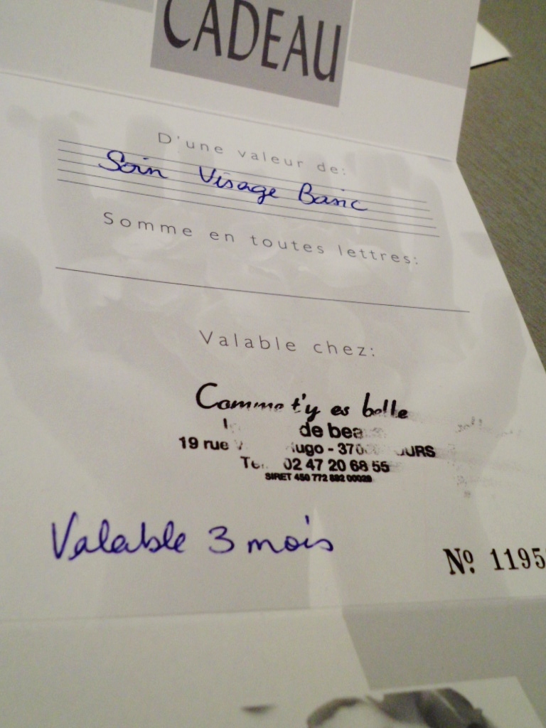 Offert par Comme t'y es belle, 19 rue Victor Hugo, 37000 Tours.