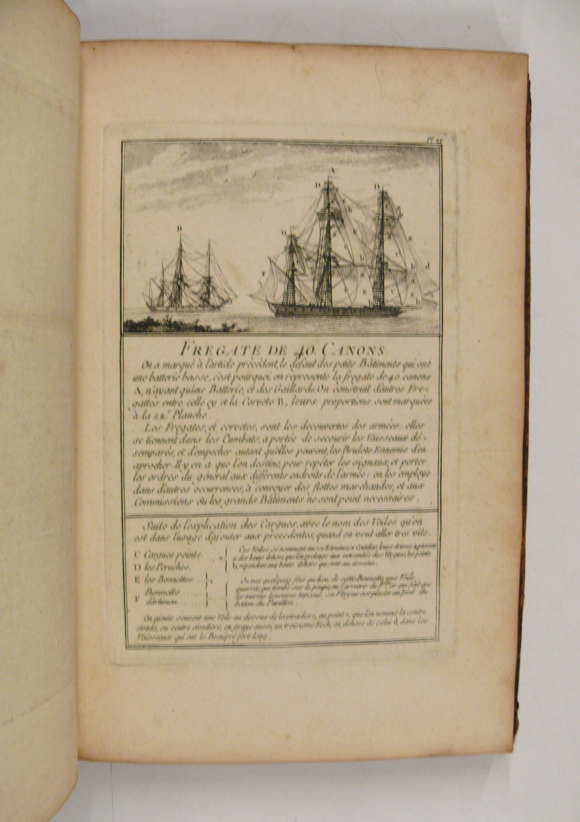 In-8 veau ép., dos à nerfs orné, coiffes et coins abîmés. 50 planches numérotées y compris le titre, l'avertissement et la table. Deuxième tirage de l'année 1762. (Le premier tirage comporte en plus un frontispice et une dédicace au Comte de Choiseul.) Réf. : Polak, 7234. Mouill. claires sinon bel état int.