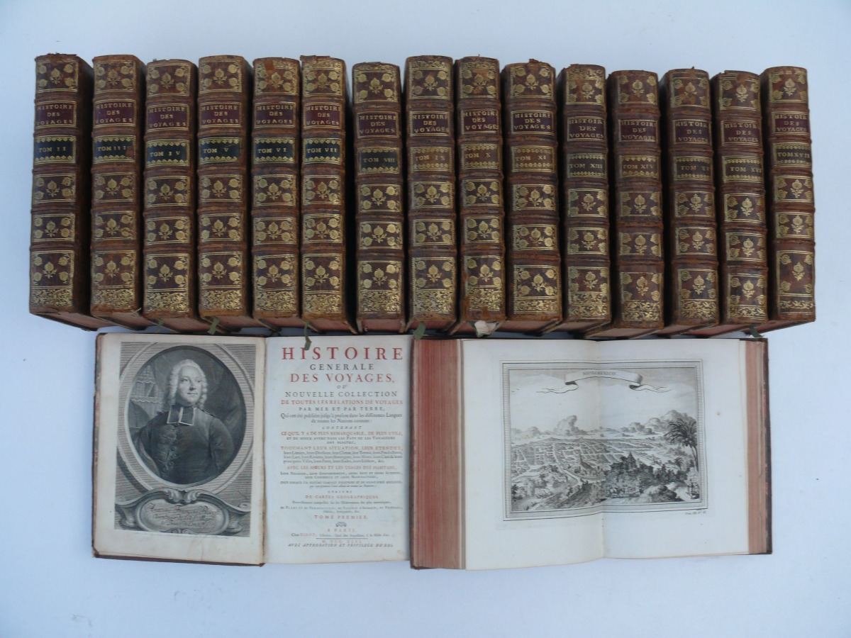 PREVOST (Antoine François d'EXILES, Abbé). Histoire générale des voyages ou nouvelle collection de toutes les relations de voyages par mer et par terre, qui ont été publiées jusqu'à présent dans les différentes langues de toutes les Nations connues...enrichi de cartes géographiques, de plans et de perspectives; de figures d'animaux, de végétaux, habits, antiquités, &c. Paris, Didot, 1746-1761.