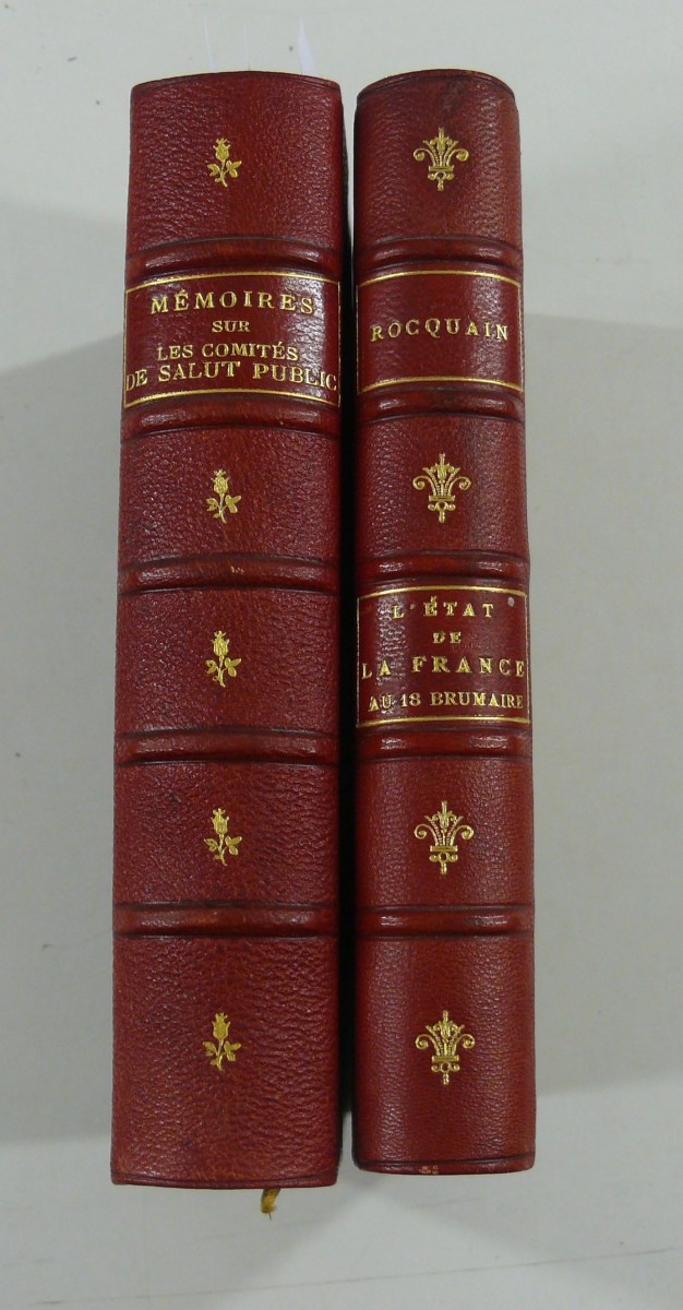 [RÉVOLUTION FRANÇAISE]. 2 petits in-8 1/2 chag. rouge: Mémoires sur les comités de Salut public de sûreté générale et sur les prisons (1793-1794). - Mémoires inédits de Sénart. - Les prisons en 1793 par la comtesse de Bohm, née Girardin. - Correspondance de Roucher. Paris, Firmin Didot et Cie, 1878.