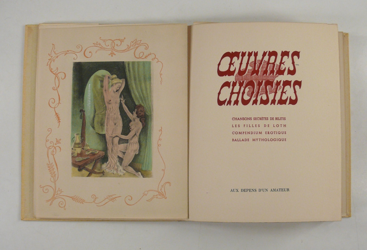 BERTHOMMÉ SAINT-ANDRÉ (Louis) (?) & Pierre LOUYS (?). Oeuvres choisies, chansons secrètes de Bilitis, les filles de Loth, compendium érotique, ballade mythologique. sl, aux dépens d'un amateur, sd (vers 1950).