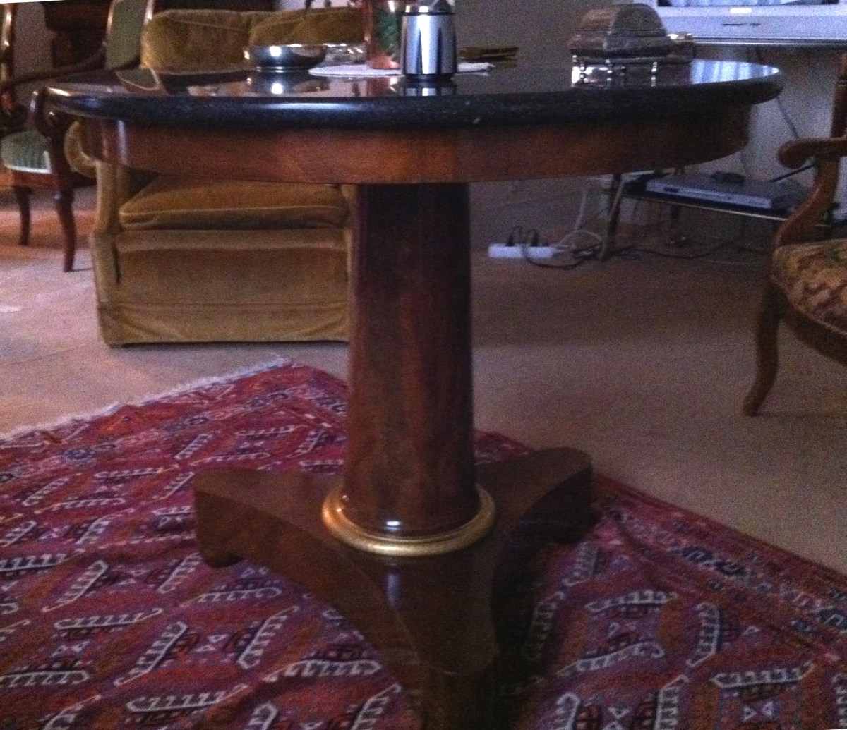 GUÉRIDON de forme circulaire en acajou. Dessus de marbre gris. Début XIXème.