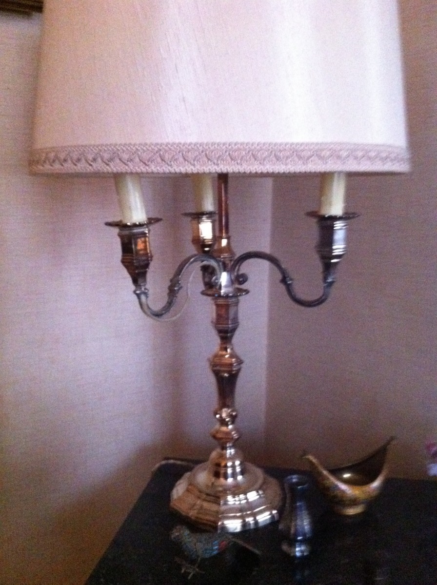 LAMPADAIRE en métal argenté, style XVIIIème.