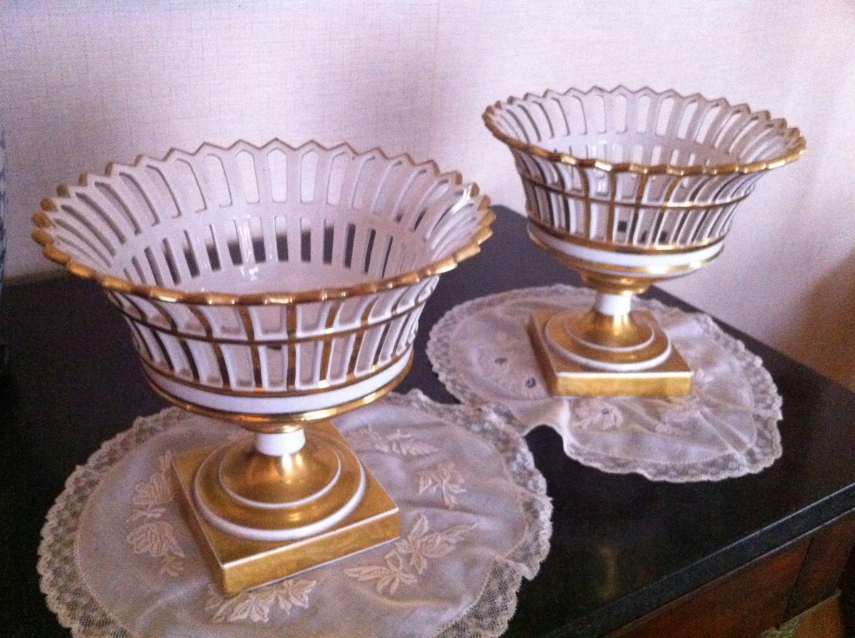 Paire de COUPES à FRUITS en porcelaine blanche.
