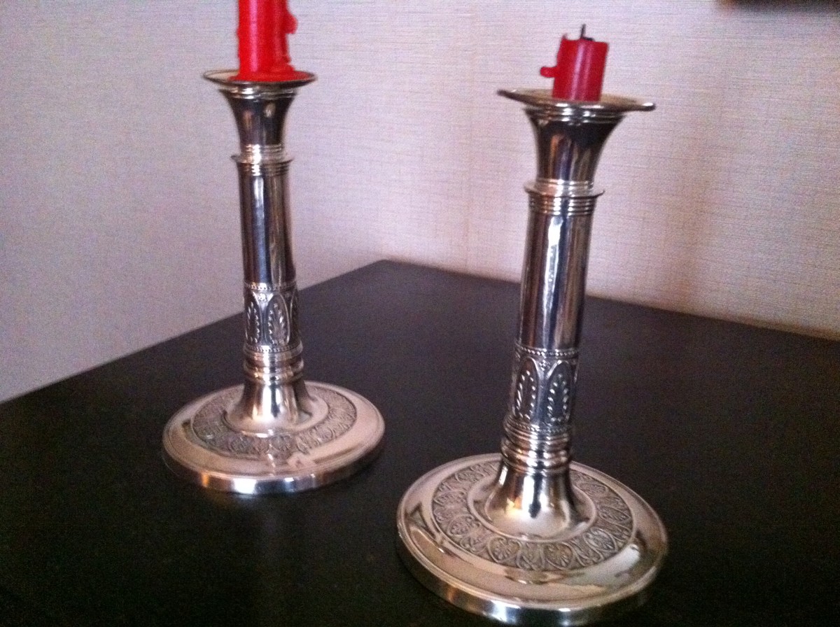 Paire de FLAMBEAUX en métal argenté. XIXème.