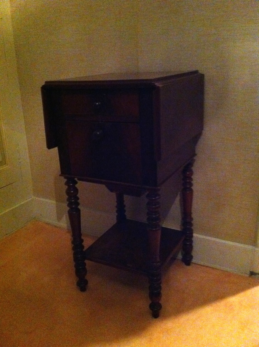 TABLE à DEUX VOLETS en placage d'acajou ouvrant à trois tiroirs. Milieu du XIXème.