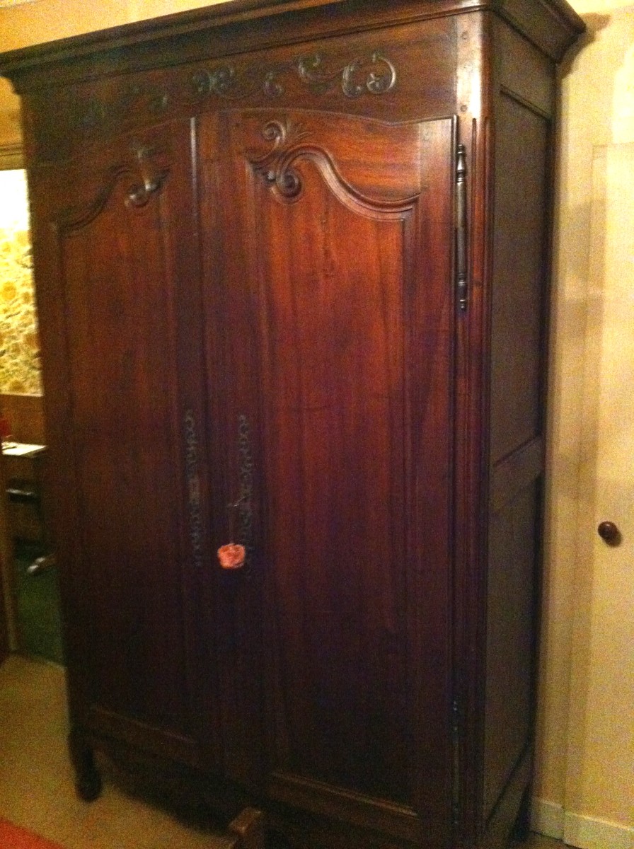 ARMOIRE en noyer sculpté, décor feuillagé, ouvrant par deux portes. Mileu XIXème.