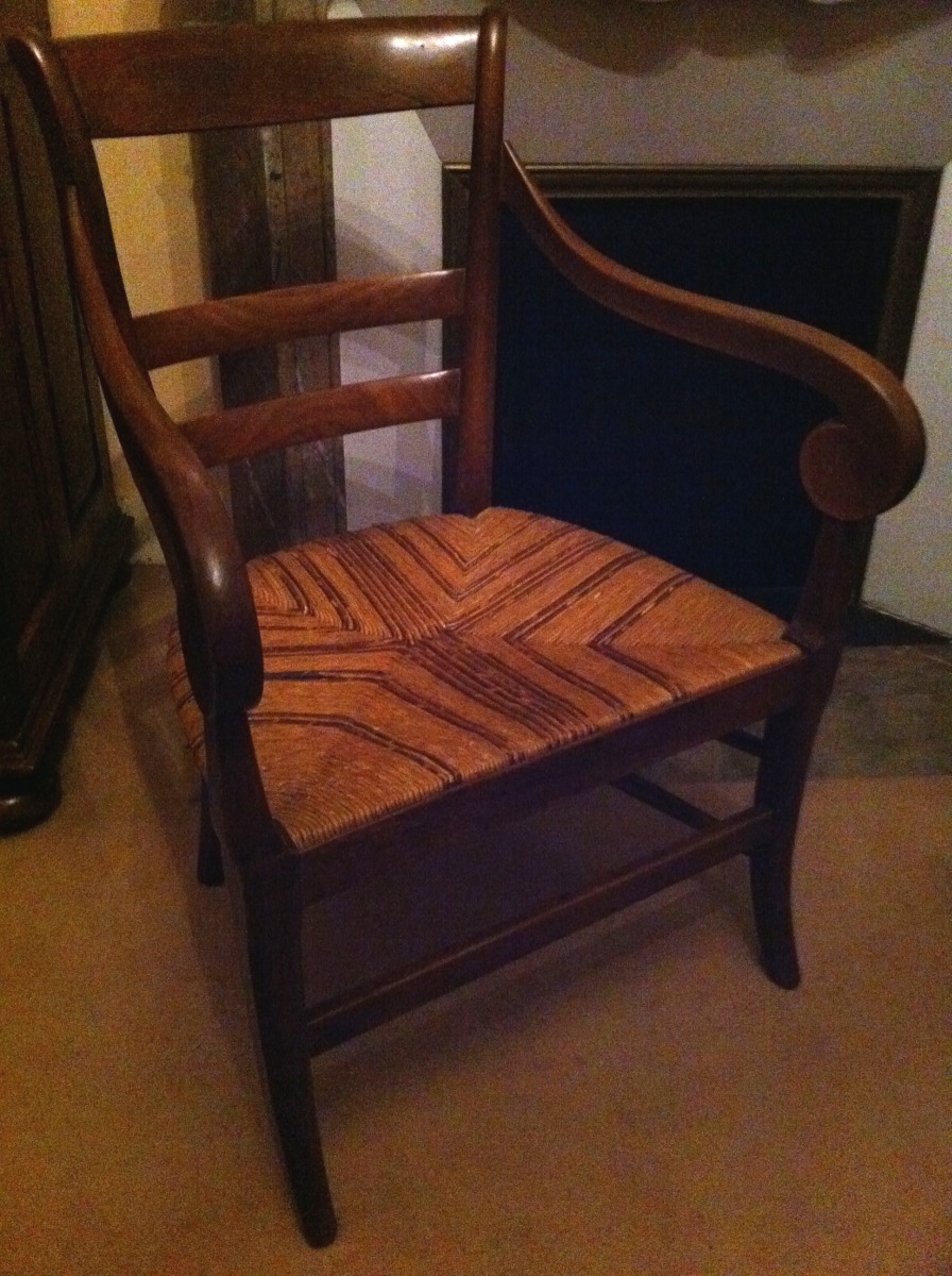 FAUTEUIL rustique paillé en bois naturel.