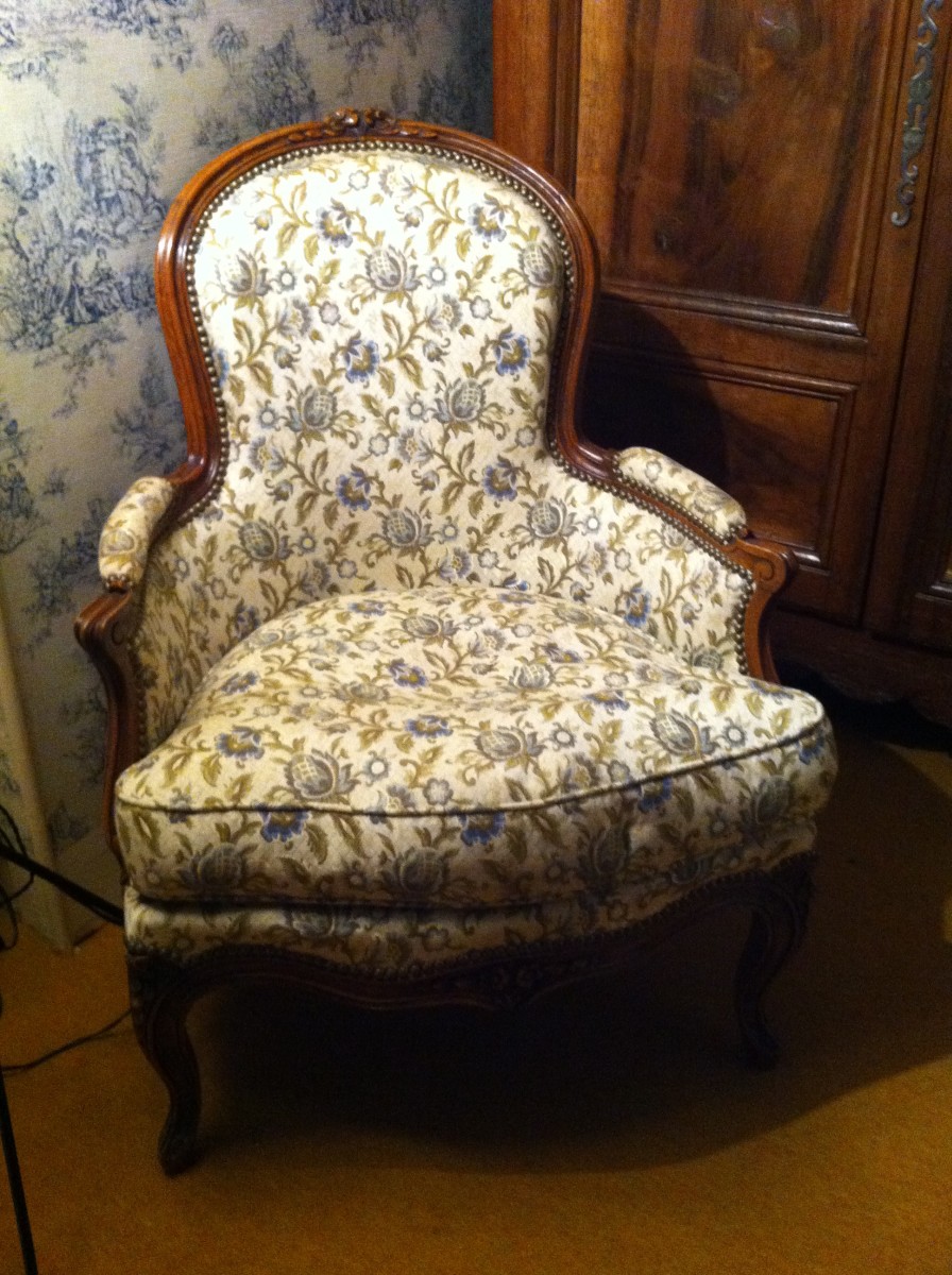 BERGÈRE en bois naturel sculpté. Style Louis XV.