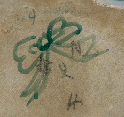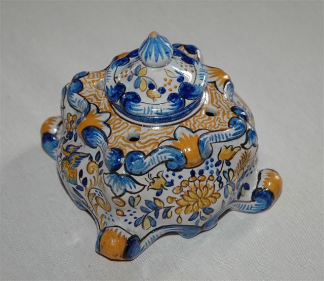 Encrier forme pyramidale pour un godet encrier couvert. Le décor est floral avec des oiseaux. Signature au talon, T C-N pour TROUSSEAU & CIE avec le nud vert, circa 1889 / 1892. (14 / 14 / 10cm), - (éclat au bouchon et godet collé)