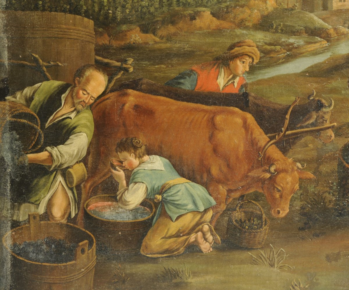 École Italienne du XVIIème, suiveur de  BASSANOScène de vendange.Toile...