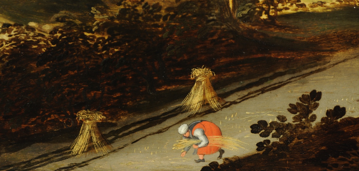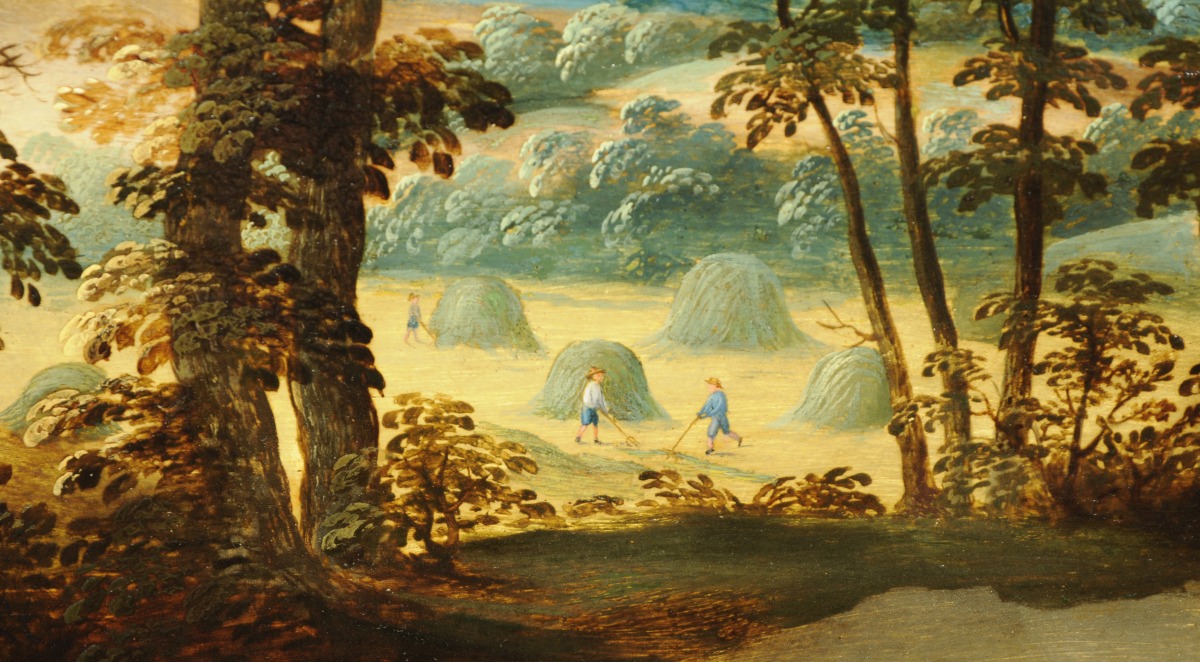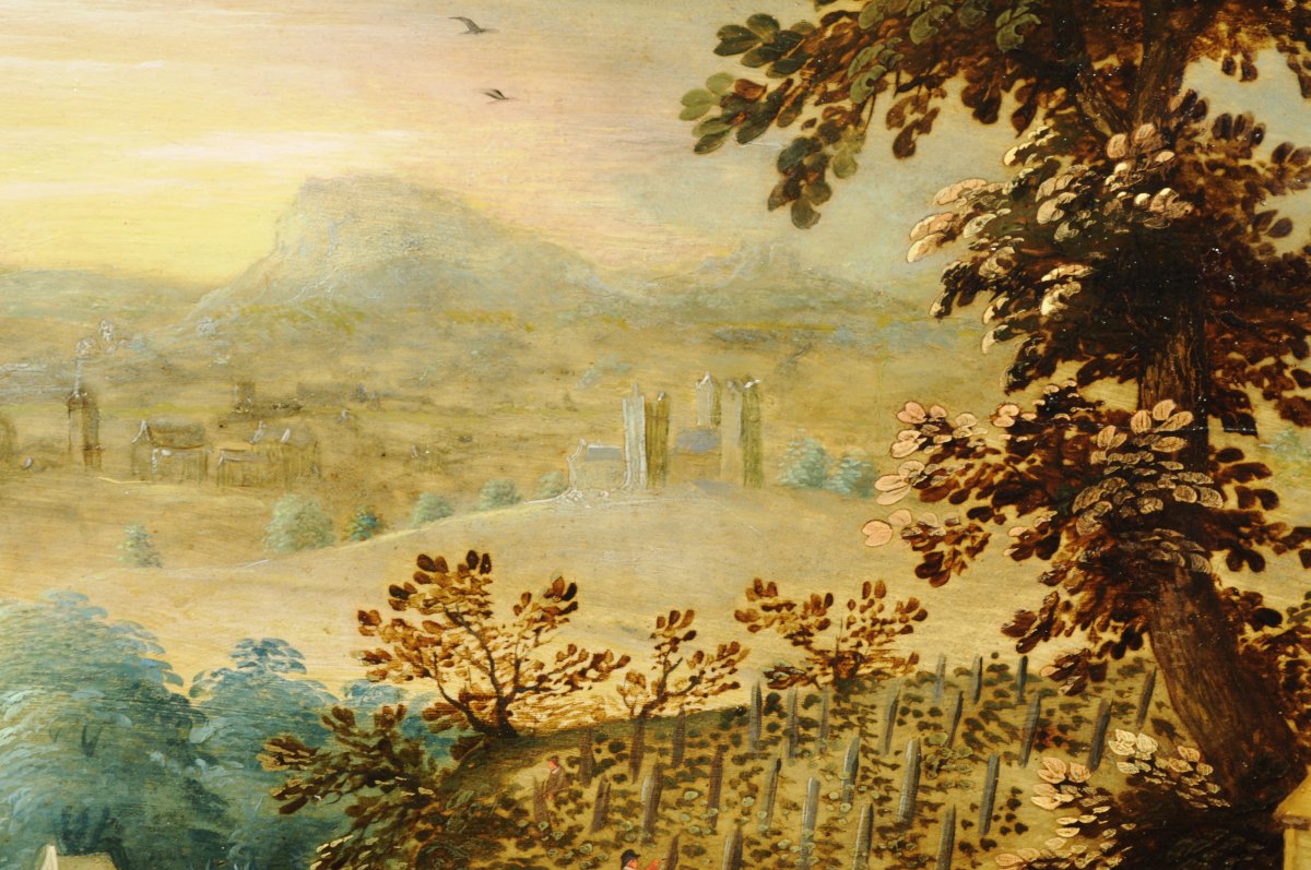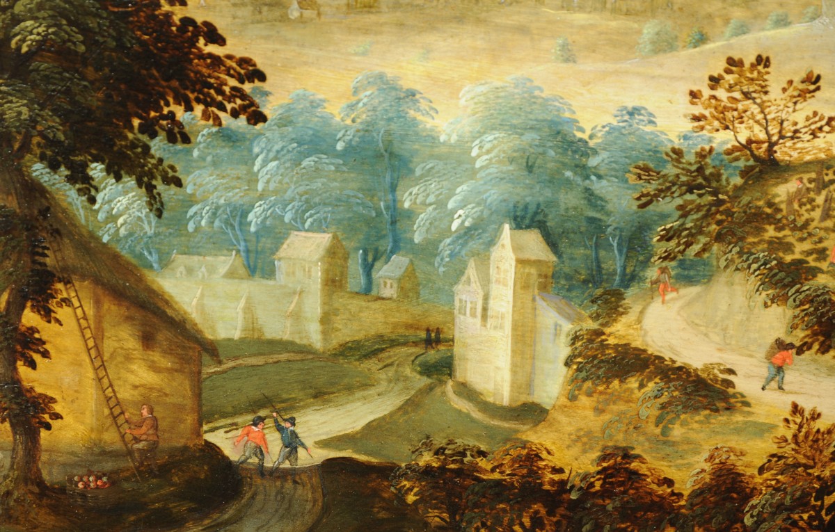 Peintre anversois connu pour ses scènes champêtres, Abel Grimmer inscrit sa peinture dans la droite lignée des primitifs flamands. Fils du paysagiste Jacob Grimmer, il est reçu Maître de la Guilde de Saint-Luc en 1592. Il réalise, cette même année, son chef d'uvre des douze mois pour la chapelle Notre-Dame de Montfaucon-en-Velay. Les activités saisonnières de l'homme sont le cadre, dans des paysages en mouvement de paraboles christiques. Il puise son inspiration dans les gravures de Bruegel et d'Hans Bol. Les Saisons et les Mois de l'année sont l'un de ses thèmes les plus répandus dans les musées et collections privées. Abel Grimmer partage, avec son père, la schématisation des figures et des paysages, l'harmonie des couleurs à partir d'une palette douce et une composition linéaire. Le rendu méticuleux des architectures et des perspectives distingue l'uvre du fils de celle du père. Abel a en effet suivi une formation d'architecte dans sa jeunesse. Ses recherches sur ce thème inspirent une nouvelle génération de peintres comme Pieter Saenredam, célèbre pour ses intérieurs d'églises. Charmante, naïve et subtile, l'uvre de Grimmer fils puise ses qualités dans les fondements de la peinture flamande. Elle marque un tournant vers le XVIIème siècle, le Siècle d'Or.