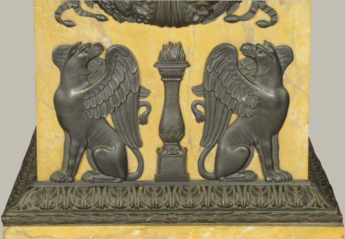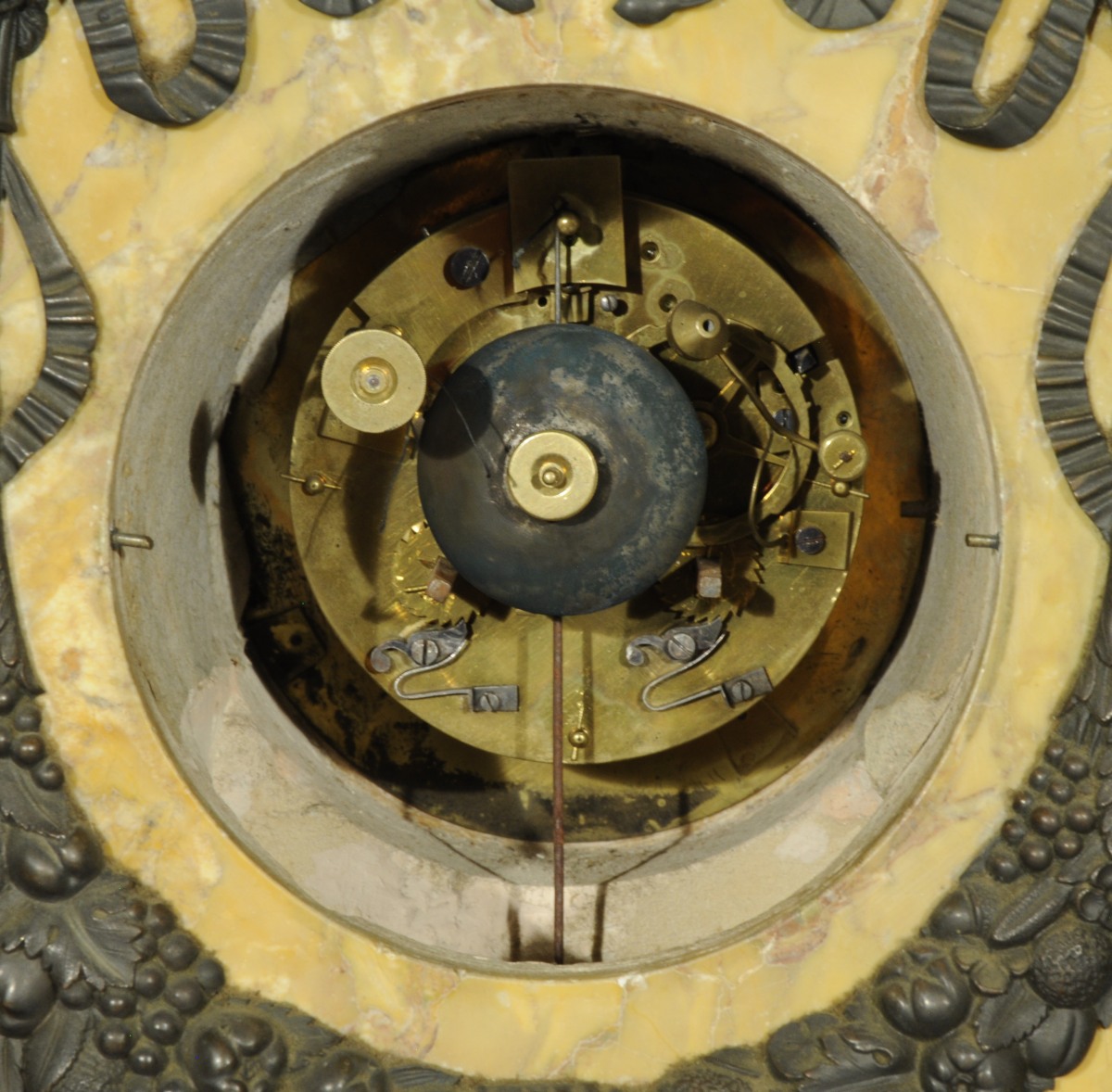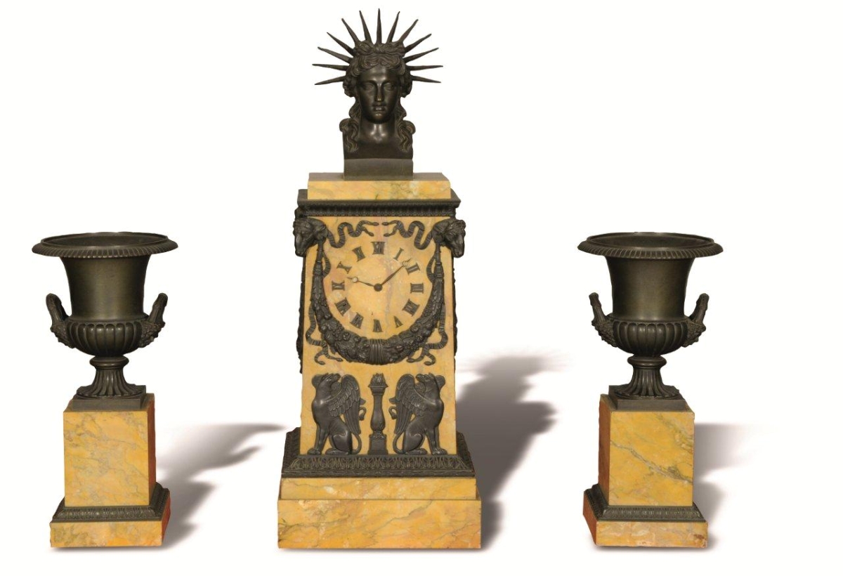 ALLÉGORIE DE LA LIBERTÉ.GARNITURE DE CHEMINÉE en marbre jaune et...