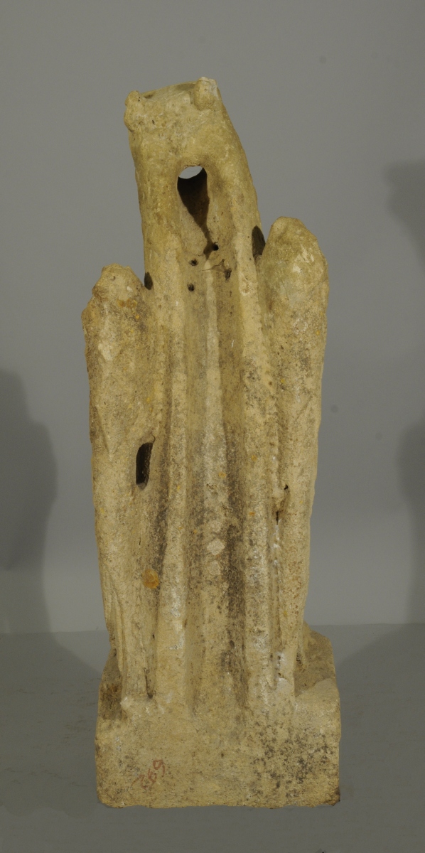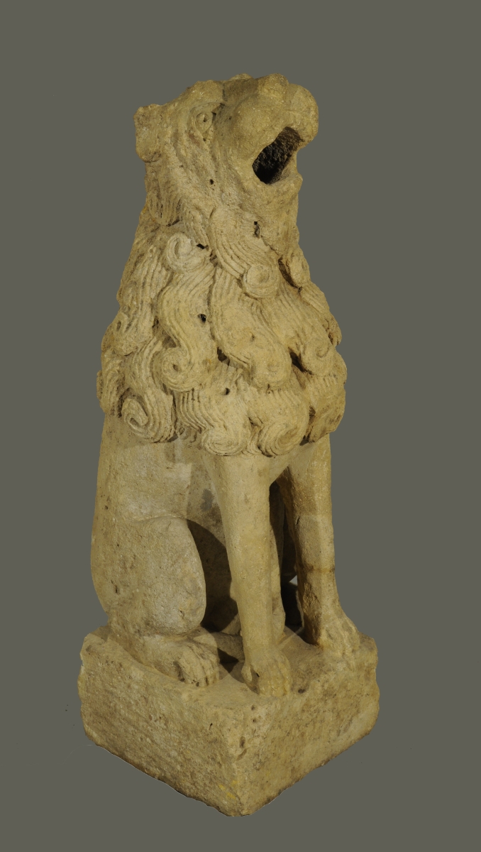 Le musée du Louvre conserve un lion comparable, du second quart du XIVème siècle provenant de la Cathédrale Saint-Pierre et Saint-Paul à Troyes (RF910). Notre paire de gargouilles est réputée avoir fait partie des collections du château de Loubresac dans le Lot. Fortifié par des remparts au XIVème siècle sur un promontoir rocheux surplombant la Dordogne par le Baron Adhémar d'Aigrefeuille, le manoir actuel remonte au XVème siècle. L'église Saint Jean-Baptiste de Loubressac abrite, dans une chapelle du 13ème siècle, un Christ en majesté, et des lions en marbre rose, d'origine carolingienne. Dans la symbolique chrétienne, la complexité fondamentale de l'homme, corps et âme, est symbolisée par l'association de l'oiseau et du lion. Grâce à leurs ailes, les oiseaux s'élèvent au-dessus des vicissitudes strictement terrestres évoquant la quête de spiritualité, alors que l'animalité humaine est évoquée par l'image du lion.