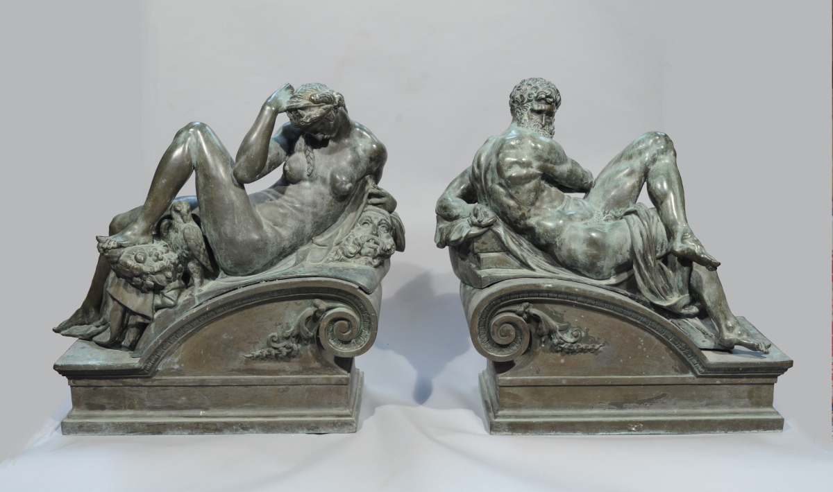 Bronzes à patine vert-antique, d'après les sujets pour le tombeau de Laurent de Médicis.