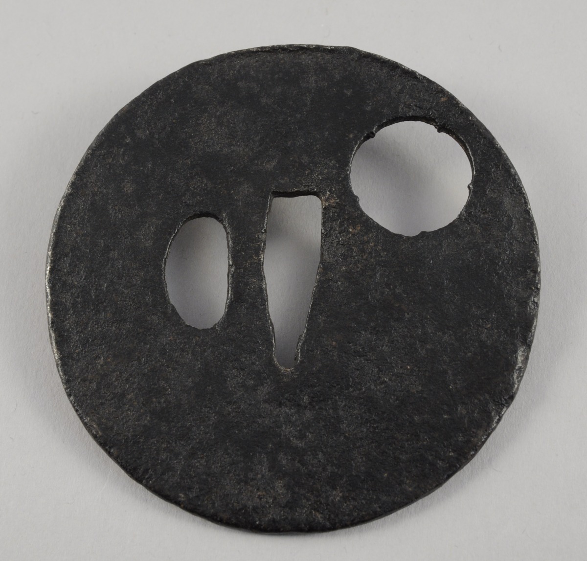 MARU-GATA en fer, à surface martelée. Style Katchûshi. Diam. 8...