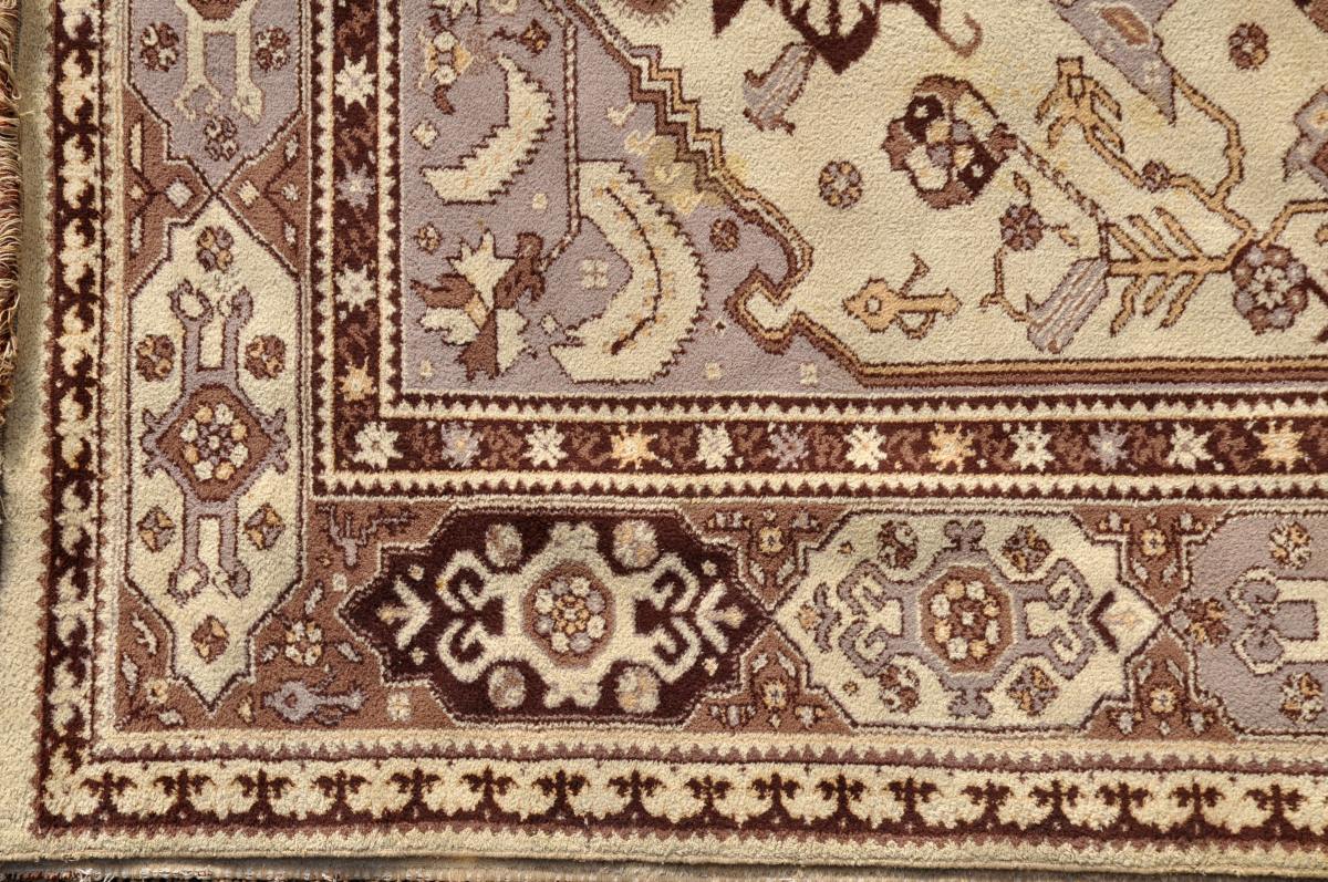 TAPIS de style caucasien en laine à motif d'arbre de vie stylisé sur fond crème. Bordure principale à motif de médailons. 300 x 200 cm. (tâches, accident)