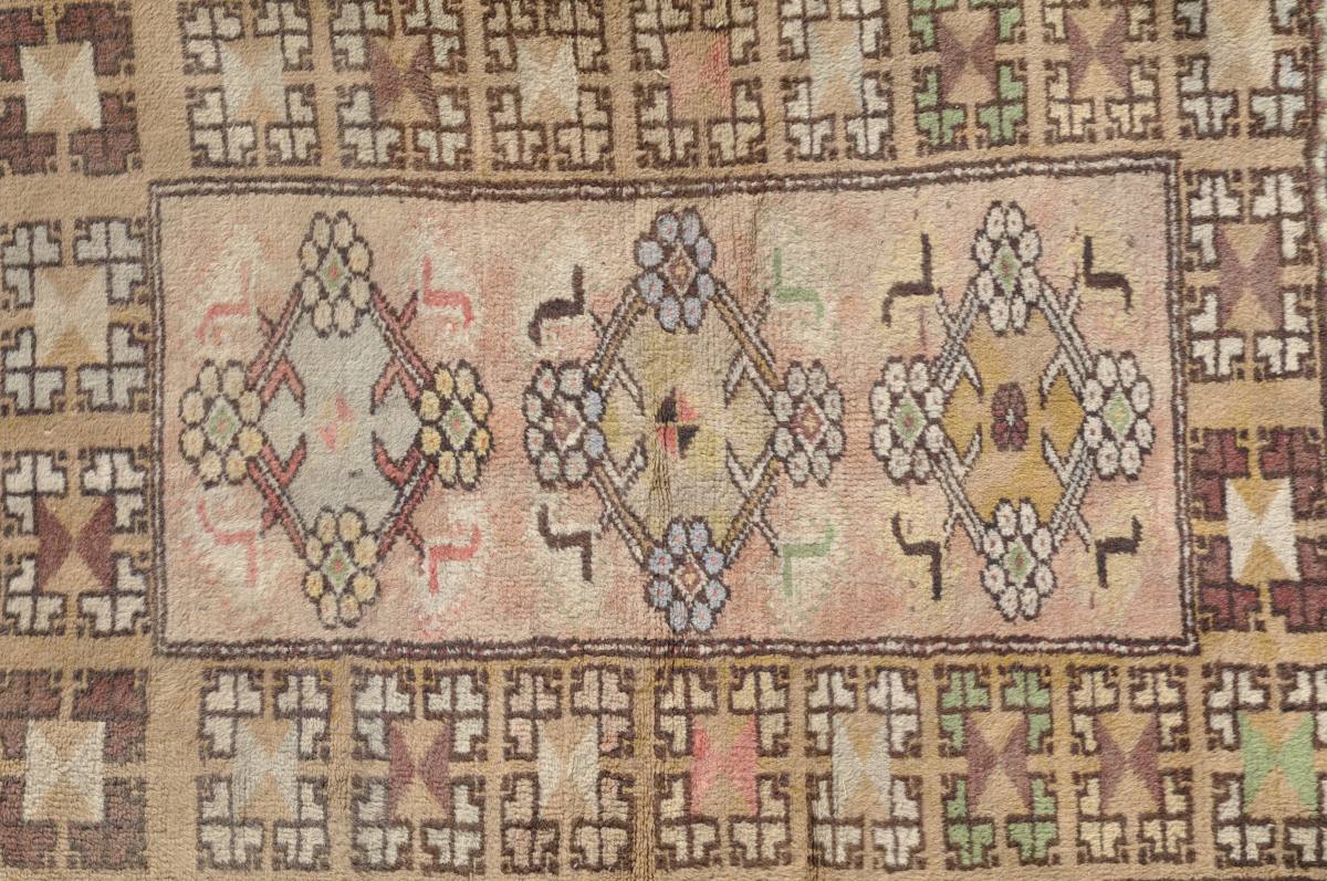 TAPIS de style caucasien en laine à motif de trois médaillons losangiques sur fond beige. 111 x 80 cm.