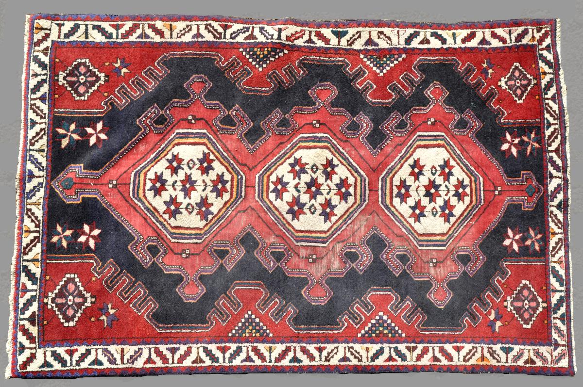 TAPIS d'Afrique du Nord en laine à fond rouge. 211 x 156 cm.