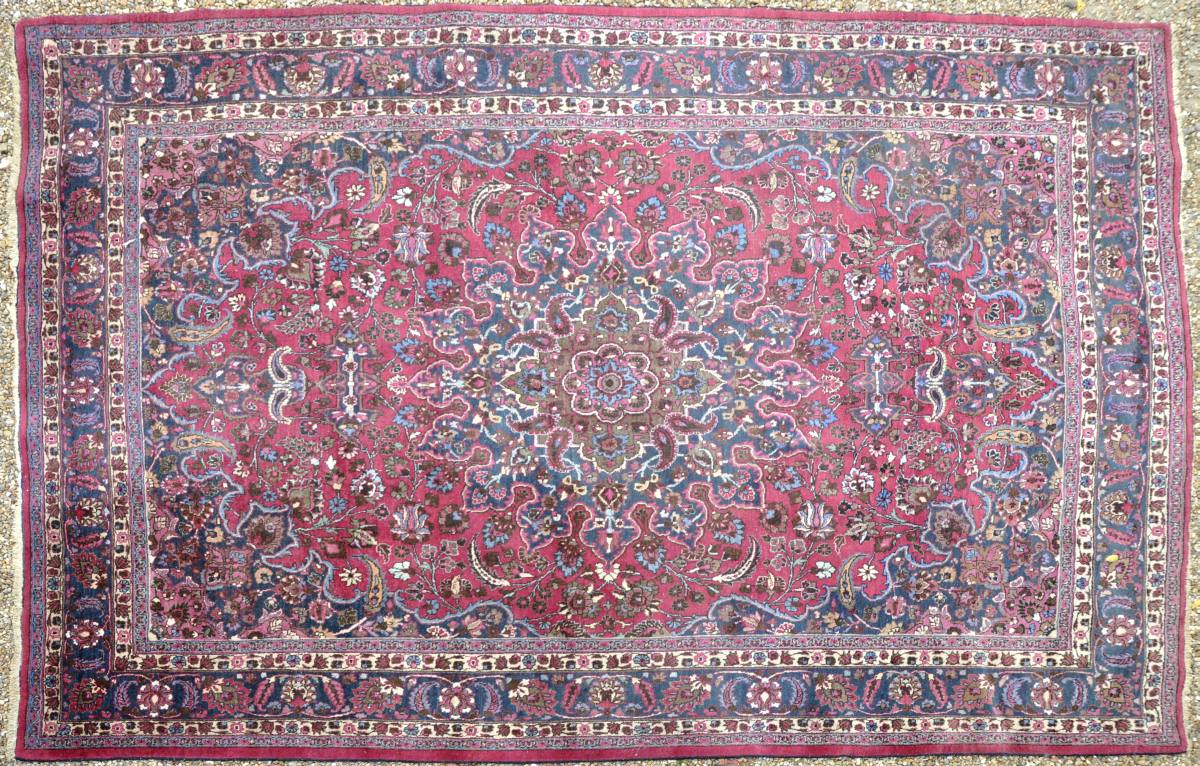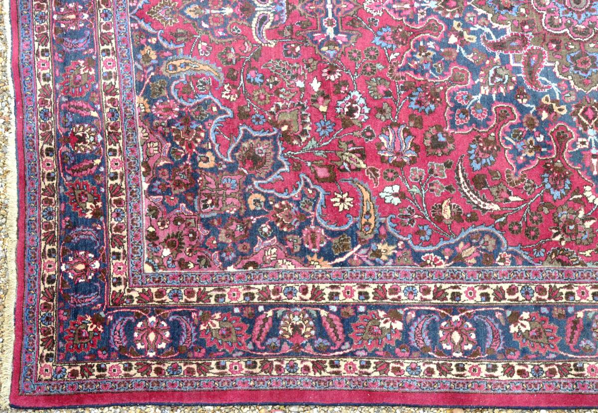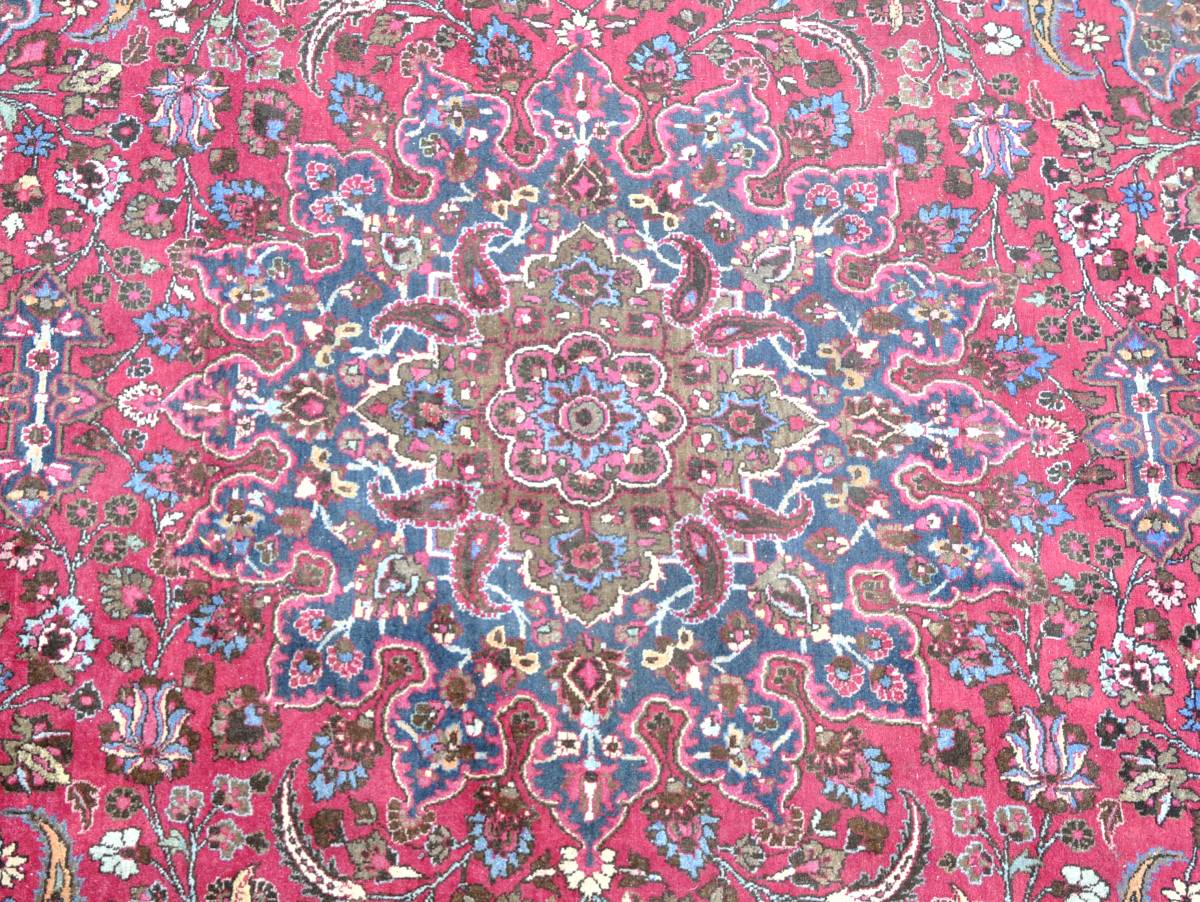TAPIS d'Asie mineure en laine à motif floral sur fond rouge. 257 x 354 cm.