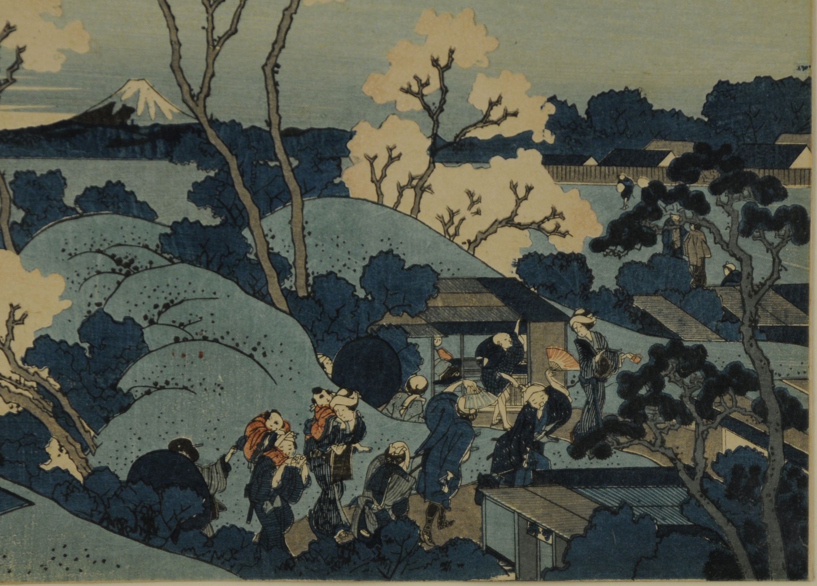 Série des 46 vues du mont Fuji. Estampe. 25 x 37 cm.