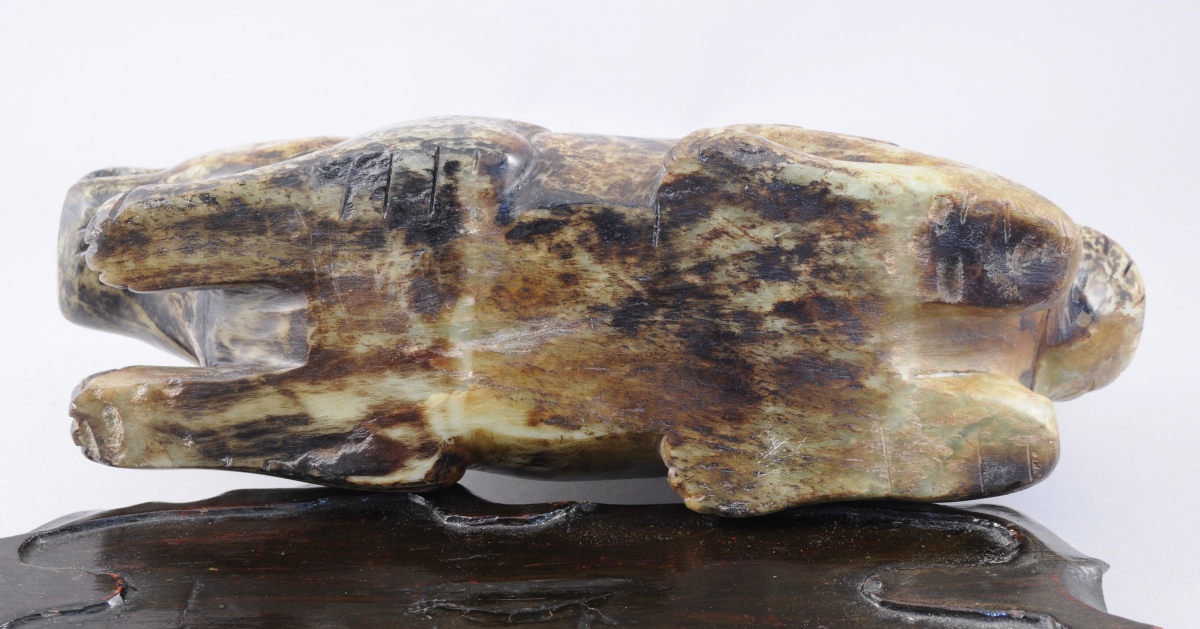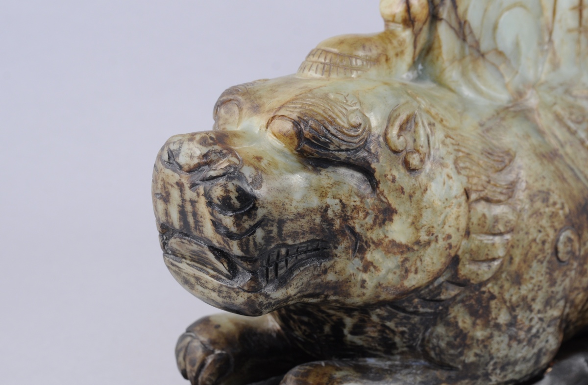 CHIEN DE FÔ en pierre dure sculptée (jade ?) . Travail asiatique du XXème.