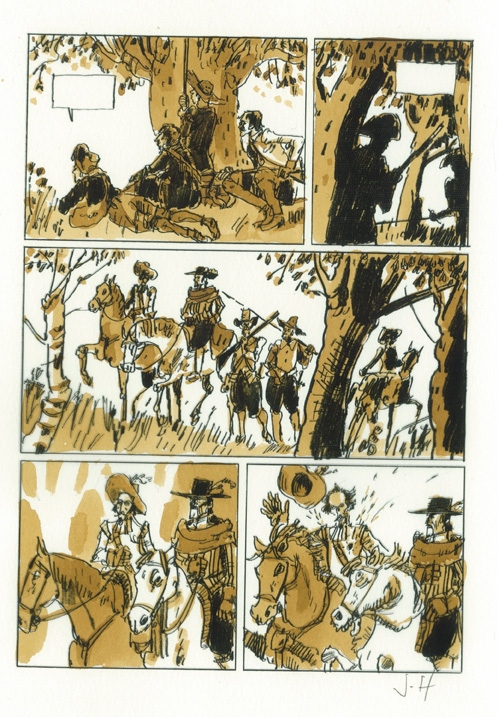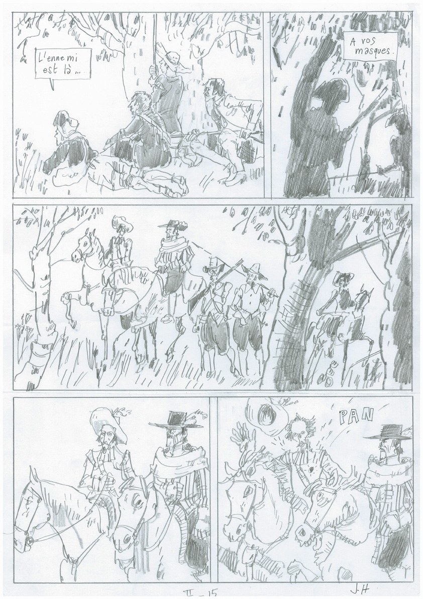 Scène d'embuscade de la BD " Les invisibles " sur la révolte contre la gabelle en Gascogne au XVIIème siècle.