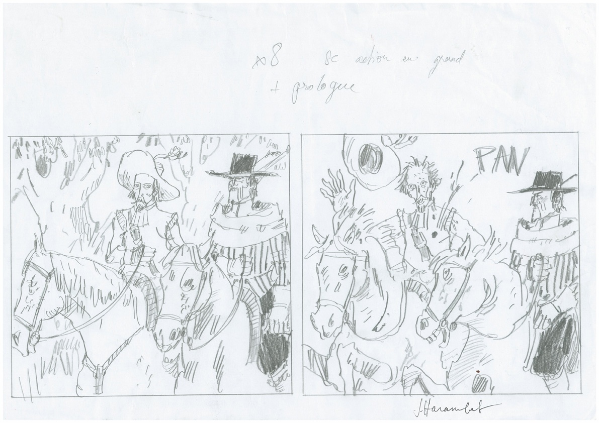 Croquis préparatoire du dernier strip : 18 x 40 cm (graphite sur papier).