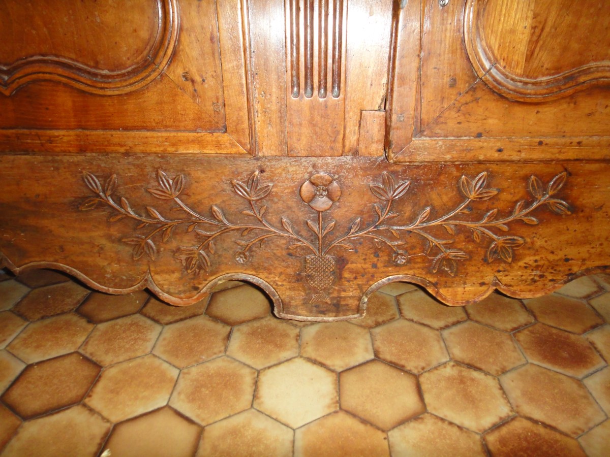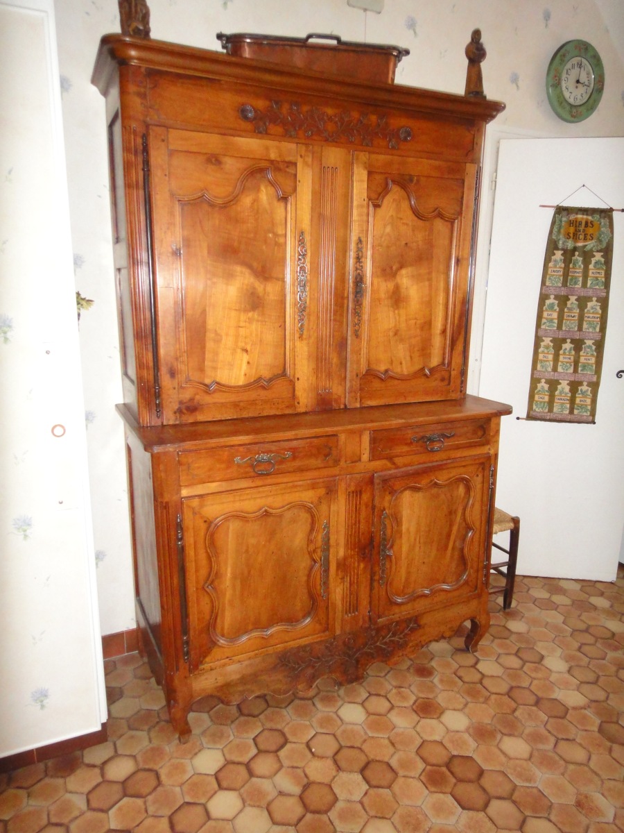 BUFFET DEUX-CORPS rustique ancien, de petite taille. Travail régional de style Louis XV. XIXème.