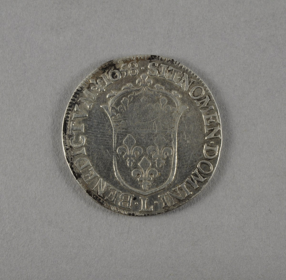 Louis XIV (1643-1715), demi écu en argent à la mèche longue, 1658, L=Bayonne à la pointe de l'écu de revers, un fleur de lys différent du Maître de la Monnaie de Bayonne Dutost, avant la date. 2900 exemplaires seulement de cette rare monnaie auraient été frappés selon F. Droulers. Dr . 527, D. 1470 TTB