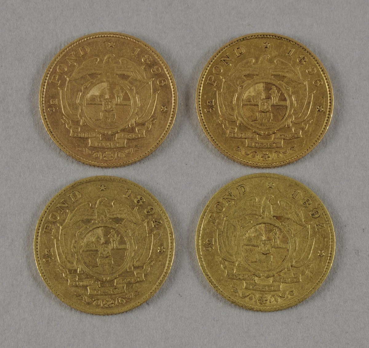 AFRIQUE DU SUD, quatre pièces de 1/2 Livres or. Deux de 1894 et deux de 1896. TTB