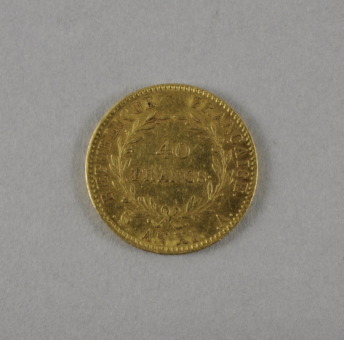 FRANCE, Consulat (1799-1803), une pièce de 40F or, Bonaparte Premier Consul tête nue, an XI. A=Paris. TTB