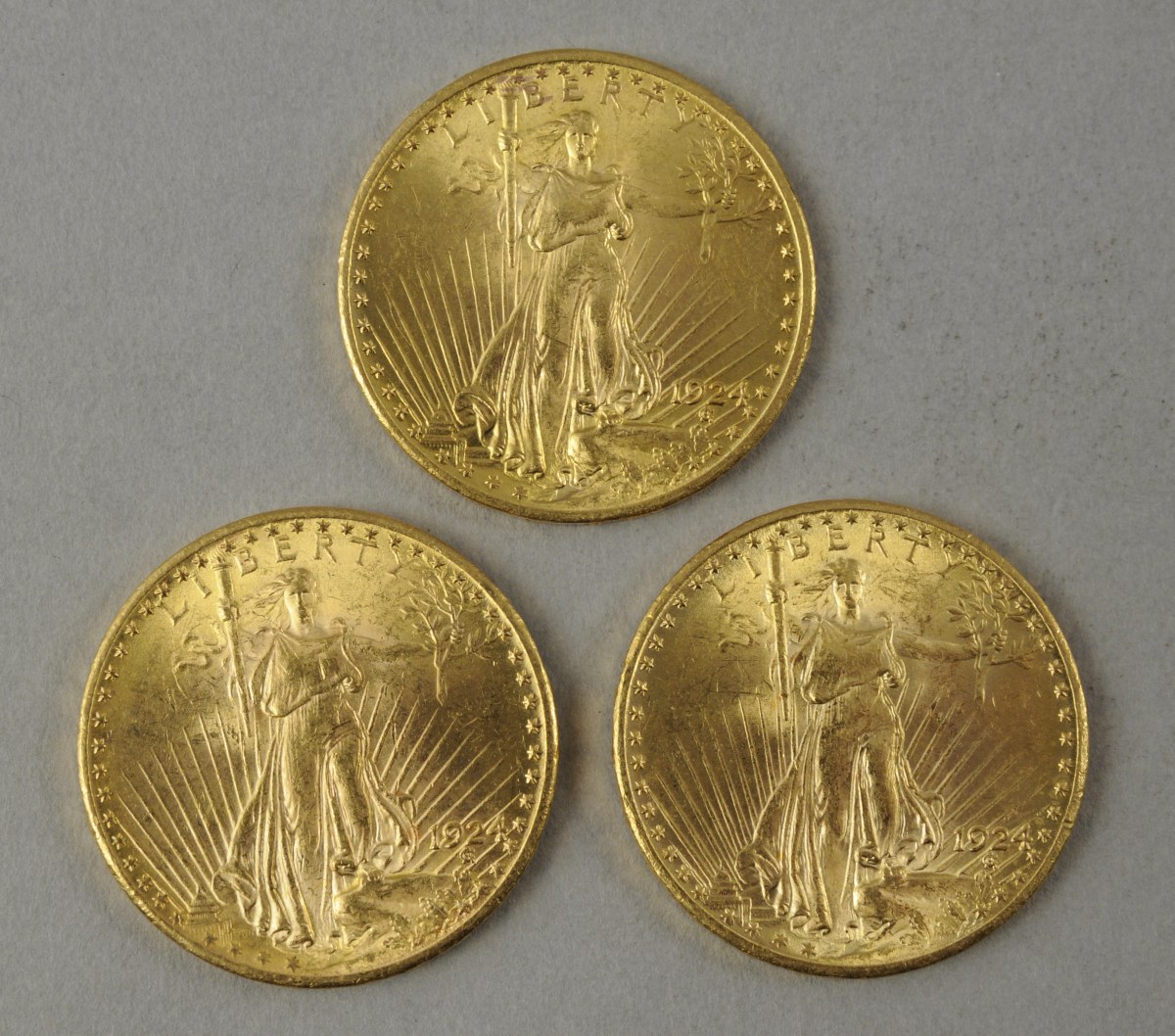 LOT, USA : trois pièces de 20 dollars or, 1924. SUP